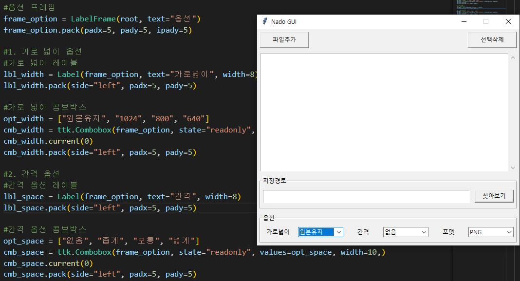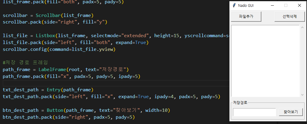 저장 경로 프레임의 경우 LabelFrame으로 만들어 프로그램처럼 해당 프레임의 제목이 나올 수 있게 해주었다.