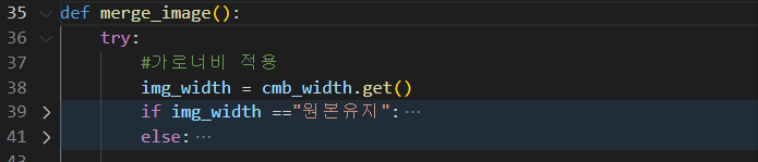 try:의 삽입 위치는 이미지 합치는 기능의 merge_image() 함수의 동작 전체를 감싸주어야 한다.