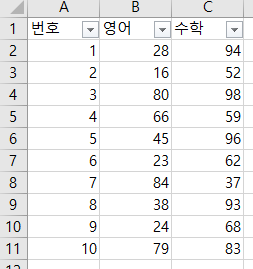 이제 작성된 엑셀 파일에서 원하는 정보를 찾는 작업을 해보도록 하자.