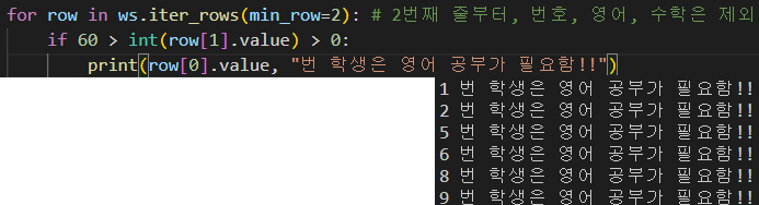 첫번째 줄이 문자형 이기 때문에 for문의 시작위치를 min_row=2 로 설정해 주고 if문을 작성해 주어야 한다.