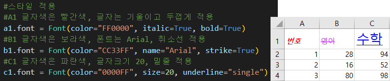 먼저 스타일을 적용하기 위해서는 openpyxl.styles의 Font를 불러와야 한다.