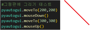 mouseDown()과 mouseUp()을 이용해 그림판에 예쁜 사선을 그려 보았다.