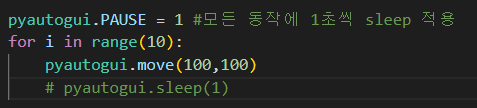 이렇게 PUASE()를 이용하면 자동화 스크립트의 전체 속도를 조절하는데 유용하다.