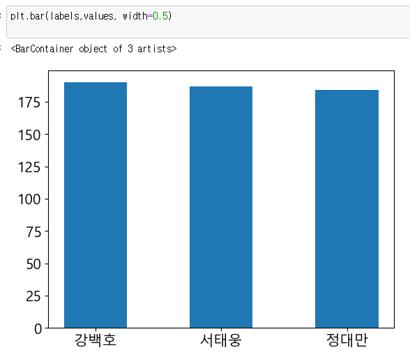 bar()의 width= 값을 설정하면, 막대의 두께를 조정 가능하다.