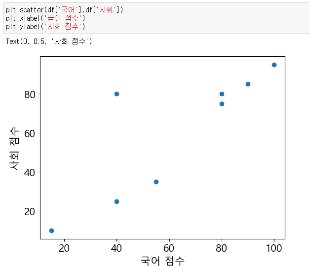 산점도 그래프는 scatter()를 이용해서 그릴 수 있으며, 일종의 좌표값을 가진다고 보면 이해하기 쉽다.