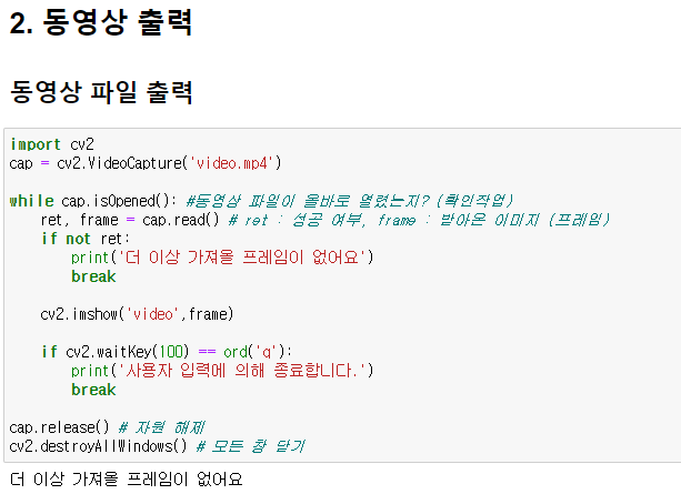 영상을 출력해주기 위해서는 while 반복문을 사용해야 한다.