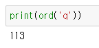 ord('q')값은 앞서 설명한 아키코드로 변화한 숫자형 데이터를 의미한다.