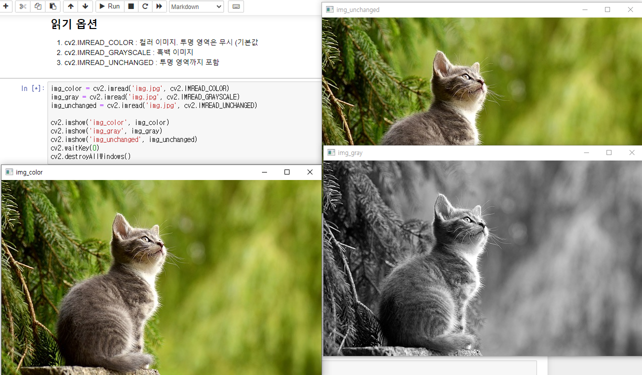 기본값은 cv2.IMREAD_COLOR 이며, 이미지를 불러올때 투명한 영역은 무시하고 불러오게 된다.